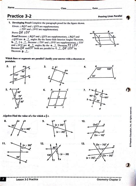 Download Geometry Practice 3 1 Properties Of Parallel Lines Worksheet Answers Hardcover